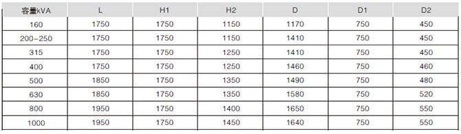 注:a.根據(jù)用戶要求變壓器的高壓分接范圍可設計為±2×2.5%; b.根據(jù)用戶要求變壓器的低壓可設計為0.69KV。